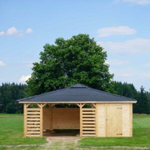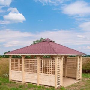 Wykonana ze świerkowego drewna otwarta altana ogrodowa Ibiza 400×400 cm będzie stanowić centrum ogrodowego wypoczynku. W altanie bez problemu zmieści się duży komplet nowoczesnych mebli ogrodowych umożliwiając wygodny wypoczynek nawet 6 osobom. Duży, piramidalny dach o powierzchni 26 m2 zapewni cień oraz ochroni przed deszczem.