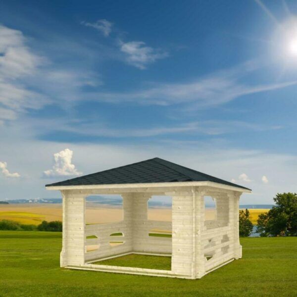 Długość i szerokość altany Ibiza wyłączając wystające elementy konstrukcyjne wynosi 380×380 cm, dając 14,4 m2 powierzchni użytkowej. Altana wykonana została wykonana z litego bala świerkowego o grubości 45 mm.